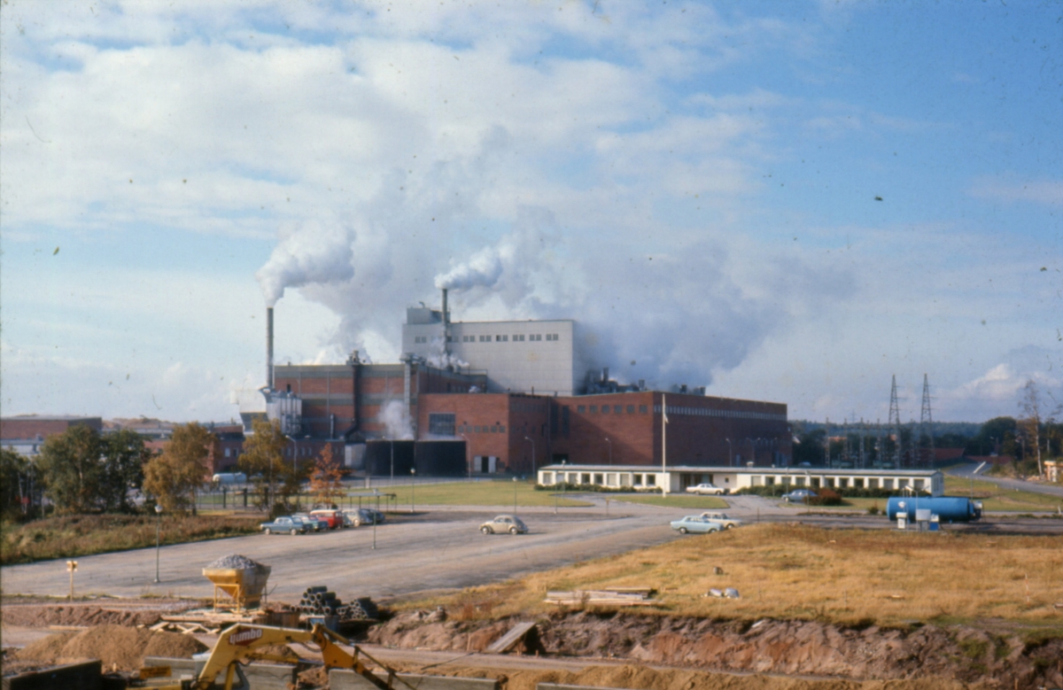 Titel: Exteriörbild från Papyrus Nymölla AB. Pappersbruket under uppförande.