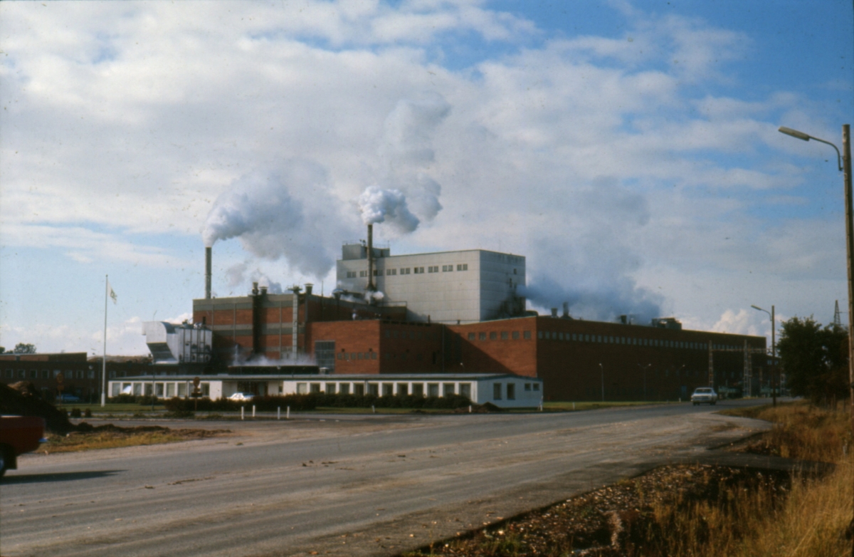 Titel: Exteriörbild från Papyrus Nymölla AB. Pappersbruket under uppförande.