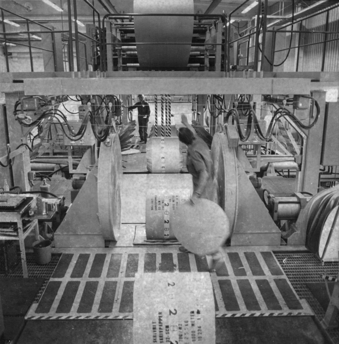 Titel: Interiörbild från Papyrus Nymölla AB. Rullpackning.