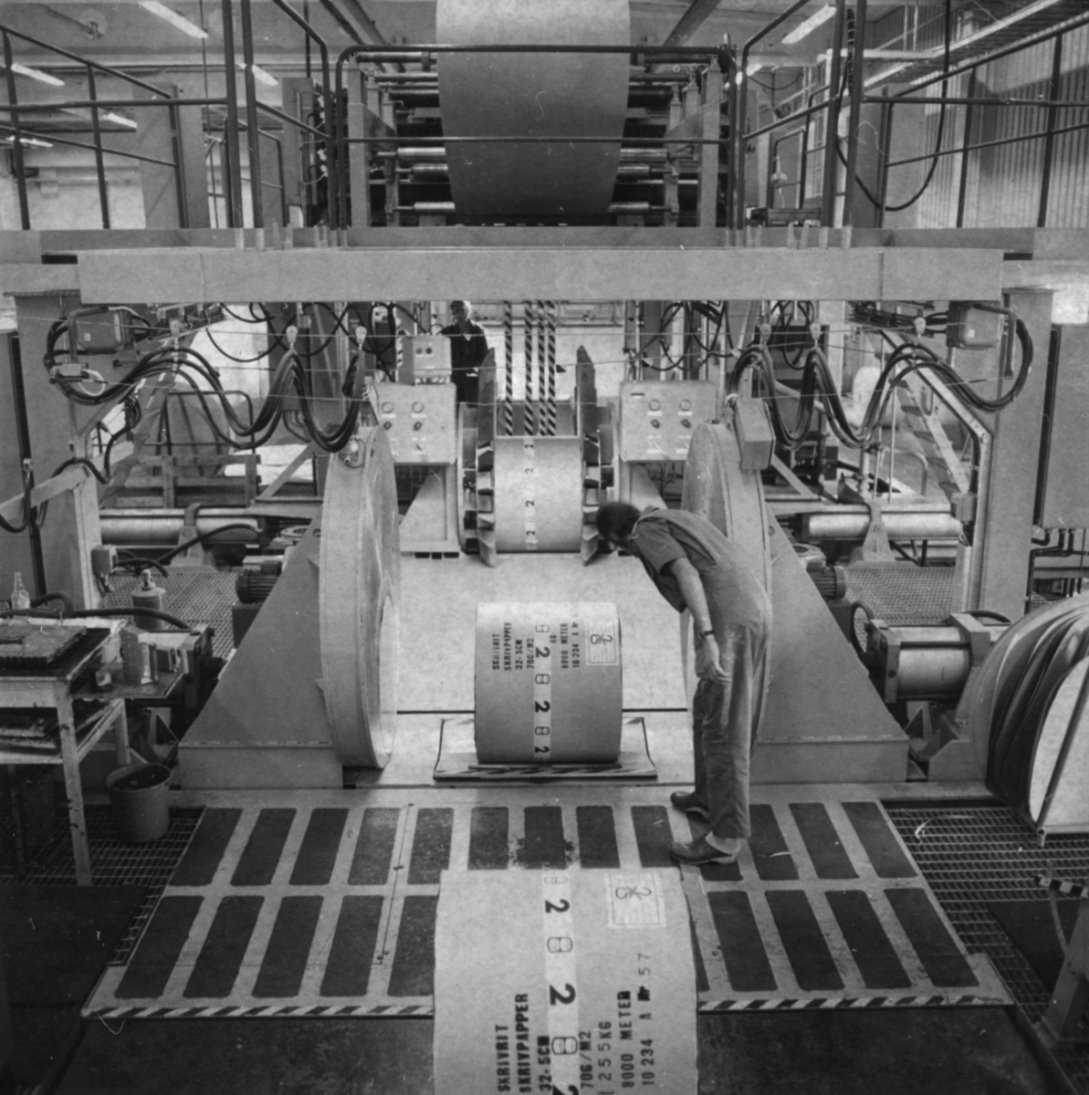 Titel: Interiörbild från Papyrus Nymölla AB. Rullpackning.