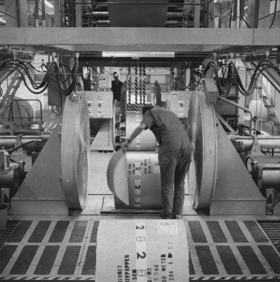 Titel: Interiörbild från Papyrus Nymölla AB. Rullpackning.