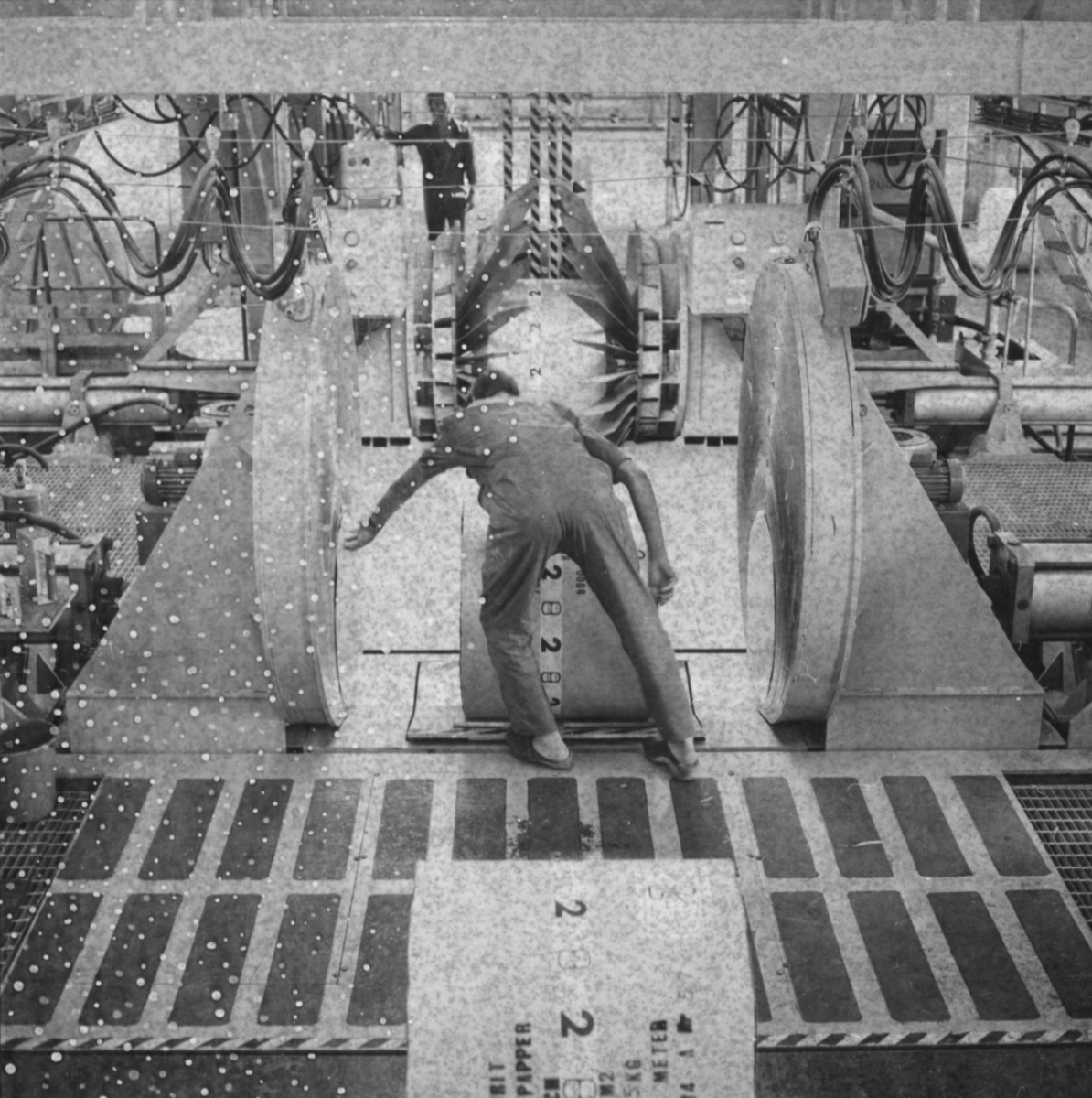 Titel: Interiörbild från Papyrus Nymölla AB. Rullpackning.