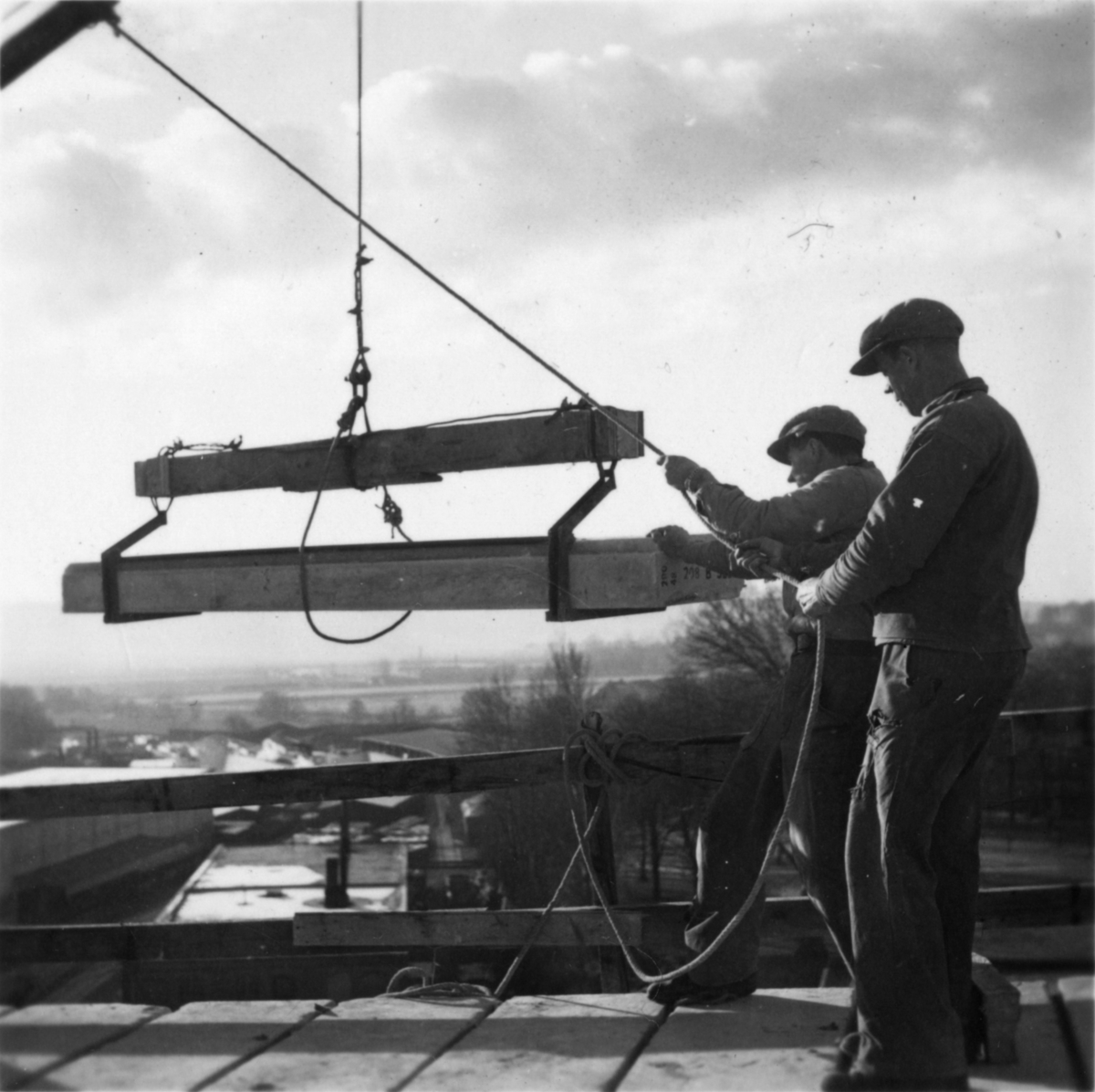 Byggnad nr 6 under byggnad. Två män på bilden.