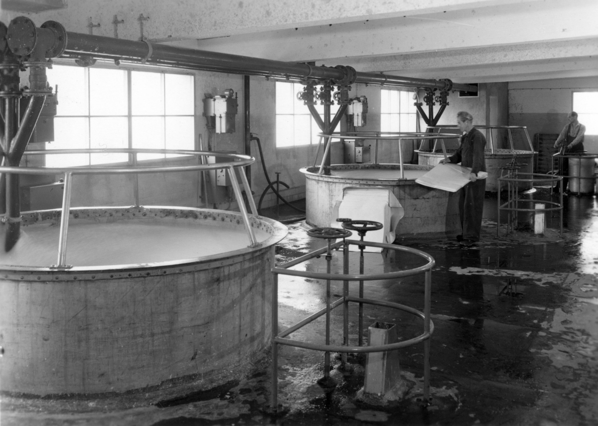 Två män arbetar vid hydrapulper Kartongmaskin 3 o 11 på Papyrus.