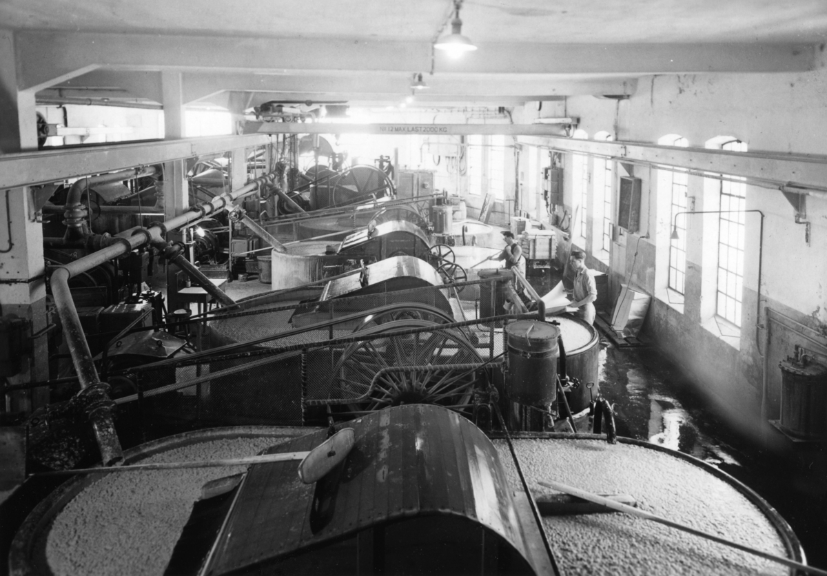 Två personer arbetar vid maskinen Holländaren PM 9 o 12 på Papyrus.