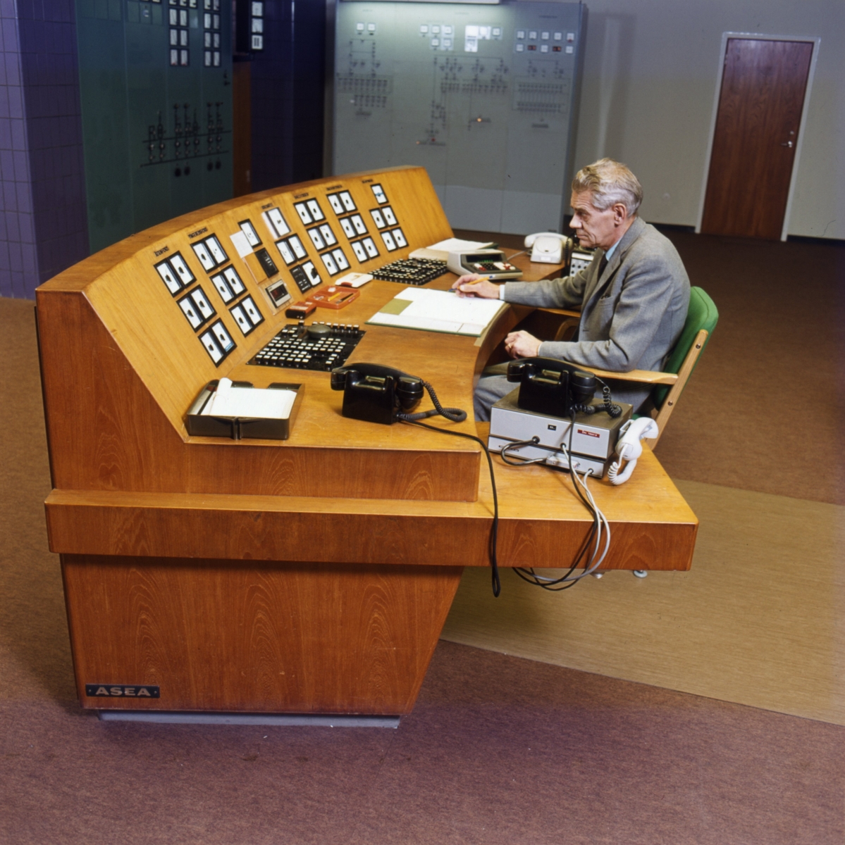 Yngeredsfors Kraft AB. Interiör från manöverbord.