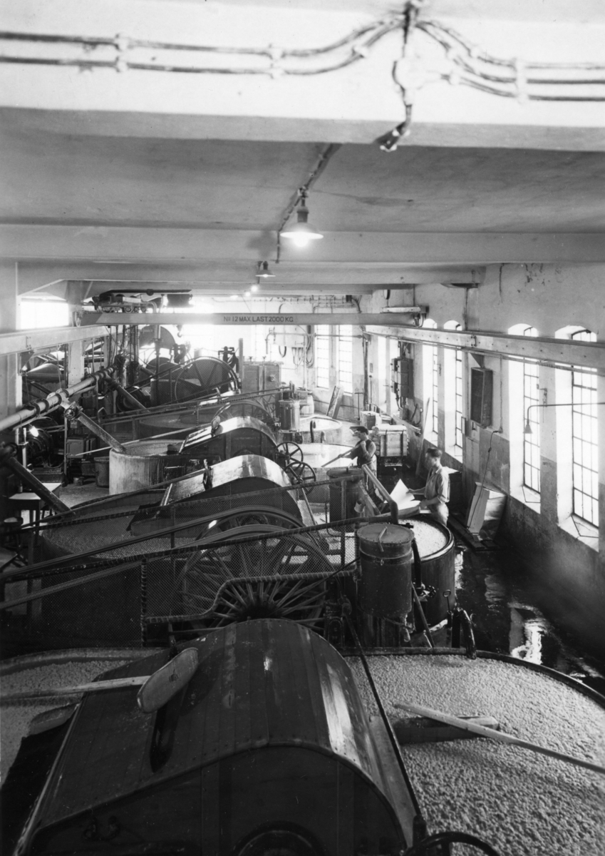 Två personer arbetar vid maskinen Holländaren PM 9 o 12 på Papyrus.