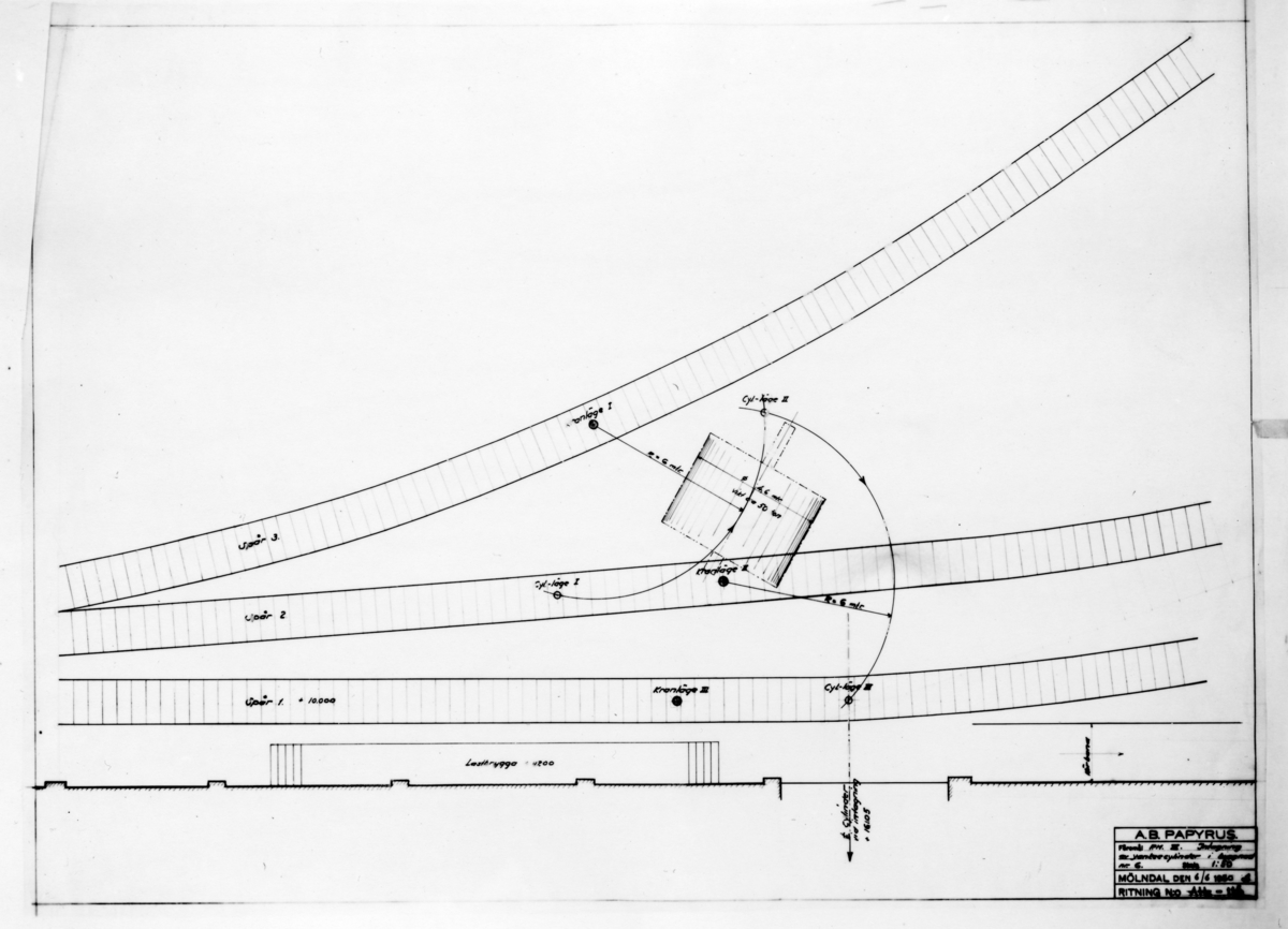Ritning på transporten av PM 3 Yankeecylindern till Papyrus fabriksområde.