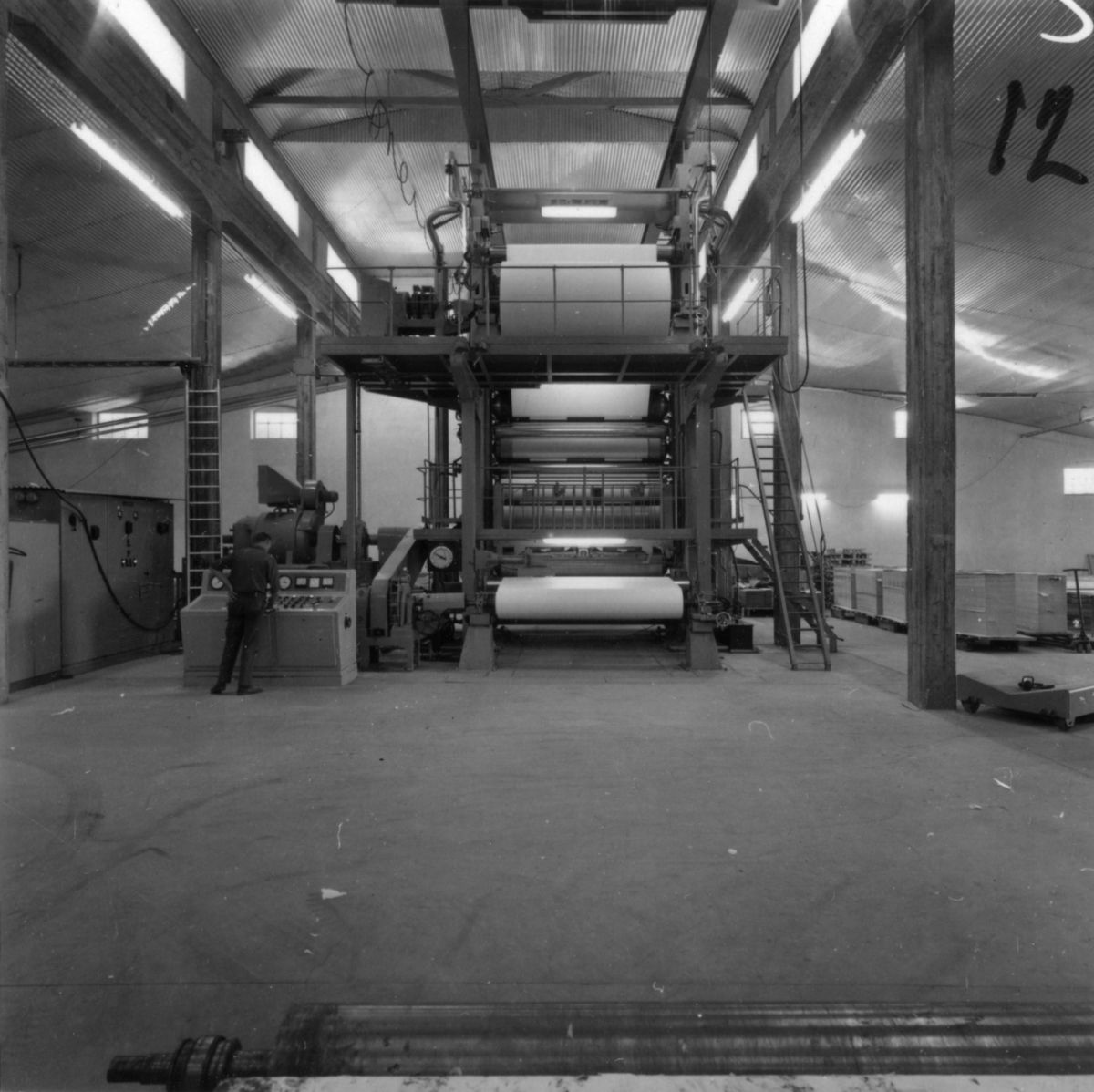 Hylte Bruk, interiör. Bestrykningsmaskin.