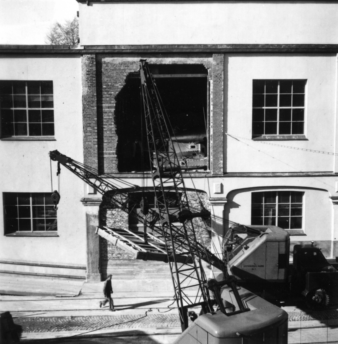 PM 3 Yankeecylindern lyfts in i fabriksbyggnaden på Papyrus område.