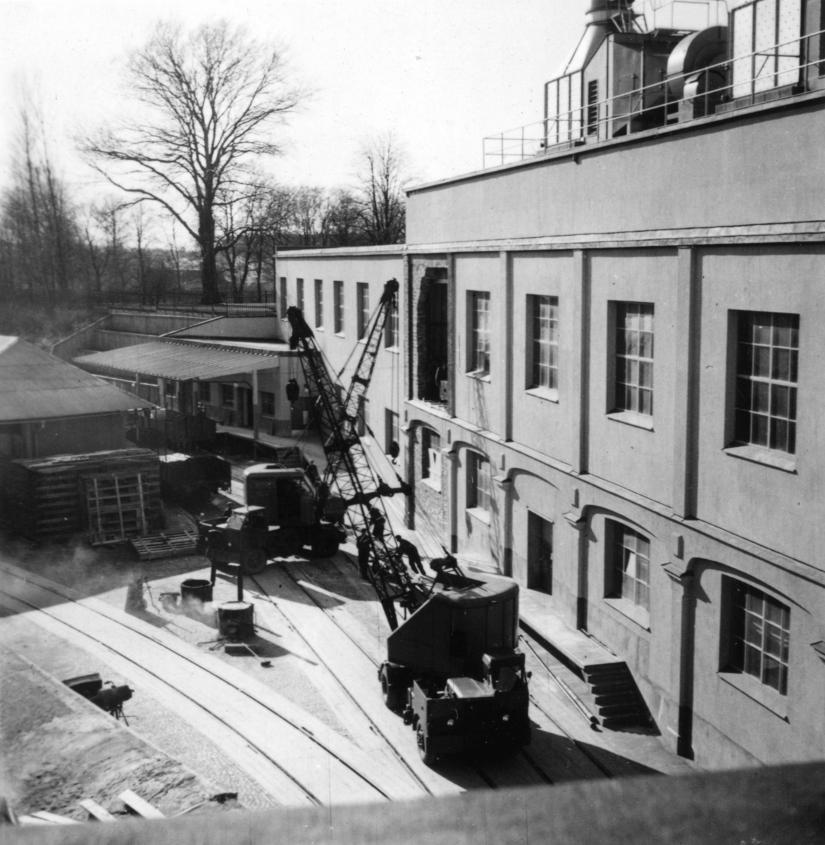 PM 3 Yankeecylindern lyfts in i fabriksbyggnaden på Papyrus område.