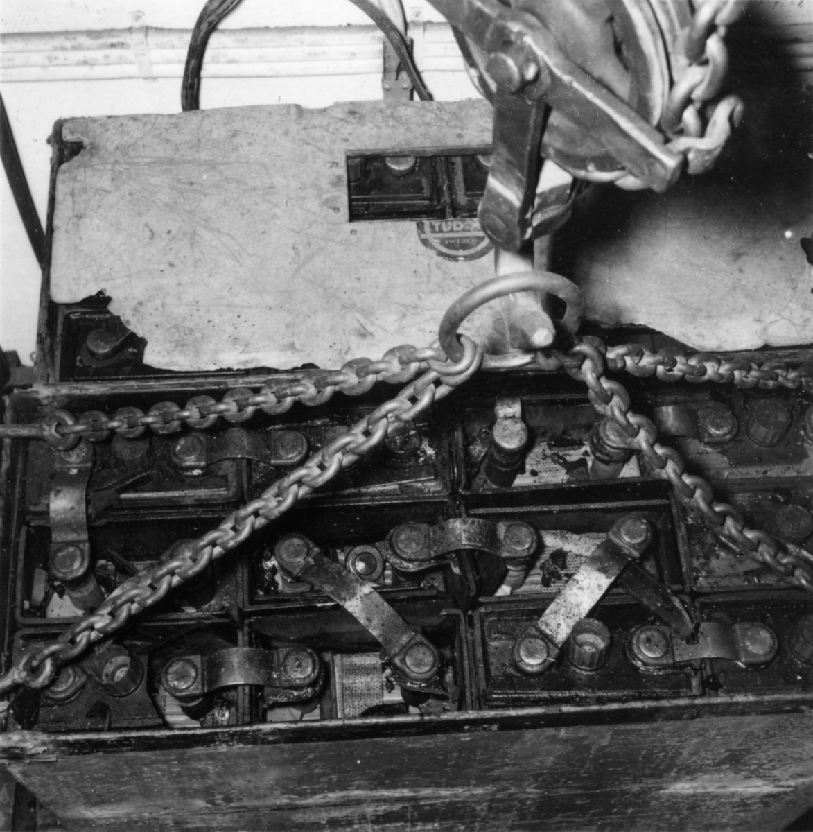 En ackumulatoruppsats som exploderat vid laddning.