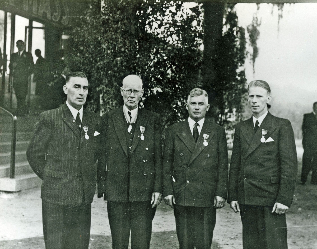 Fr. v. Hagstedt, Hjalmar, Valter, Sixten och Torsten. Utdelning av minnesmedaljer