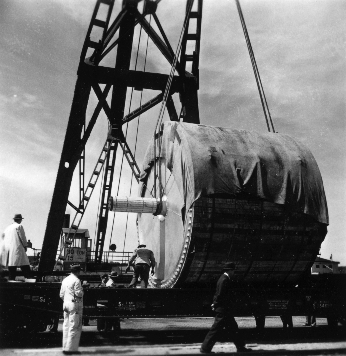 PM 3 Yankeecylindern transporteras till Papyrus fabriksområde via sjön.