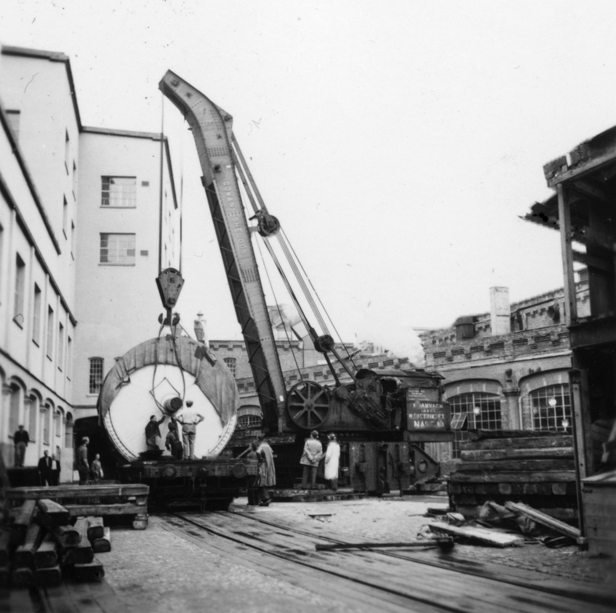 PM 3 Yankeecylindern lyfts in i fabriksbyggnaden på Papyrus område.