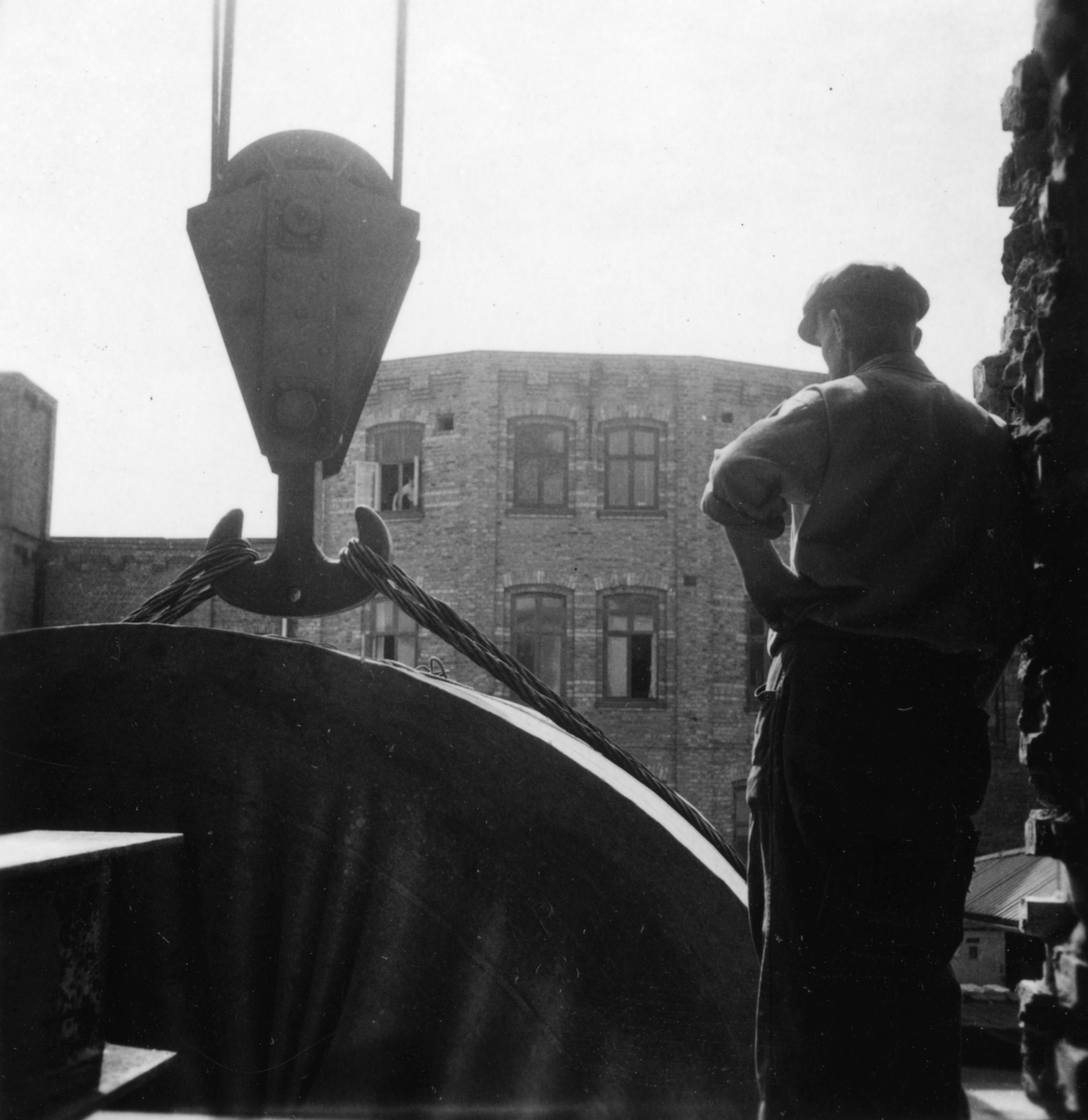 PM 3 Yankeecylindern lyfts in i fabriksbyggnaden på Papyrus område.