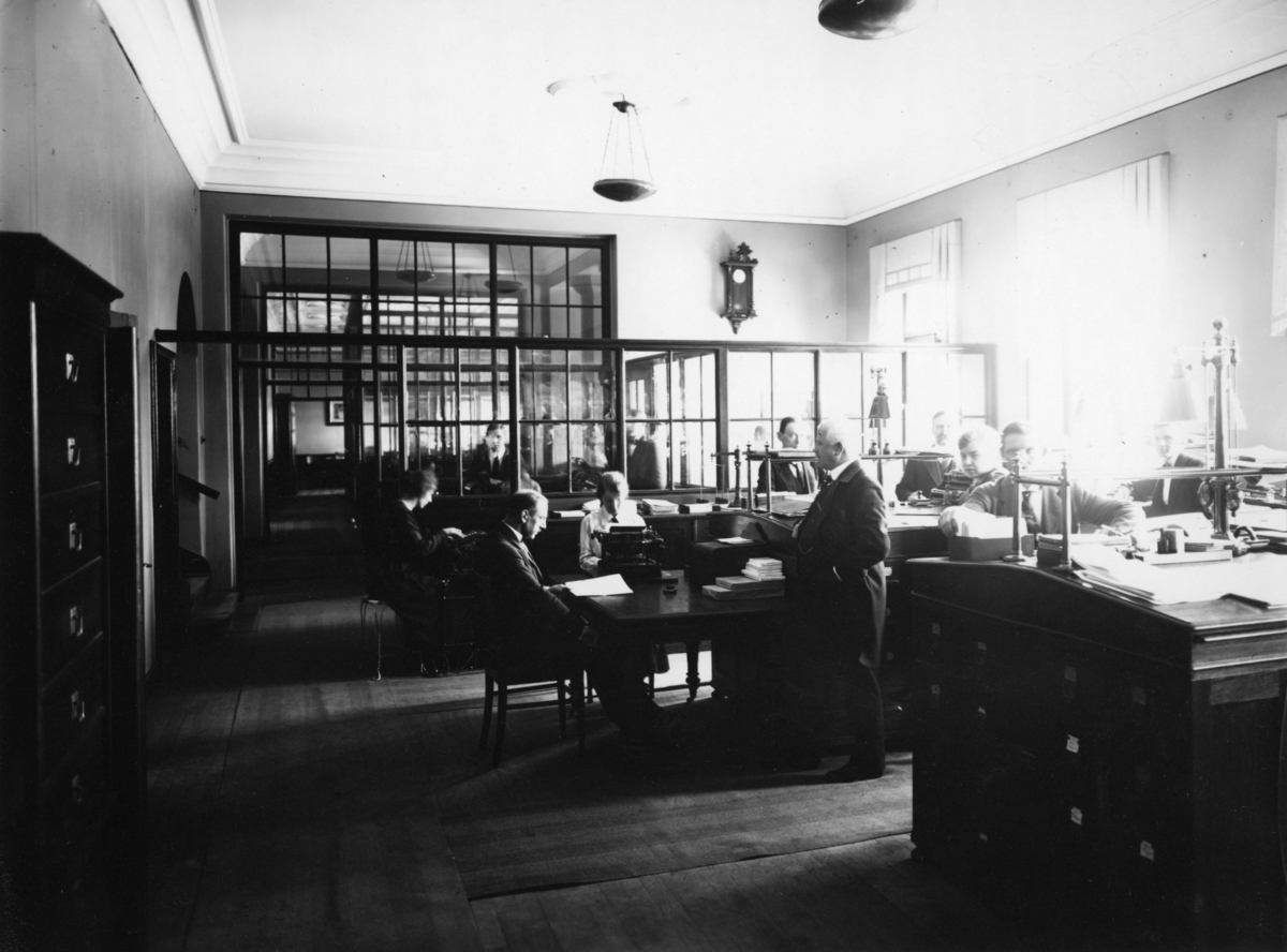 Interiör av stora kontoret på Papyrus fabriksområde.