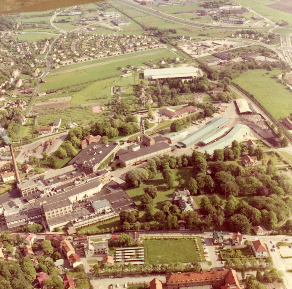 Titel: Flygfoto över Papyrus fabriksområde, 9/6-1969.