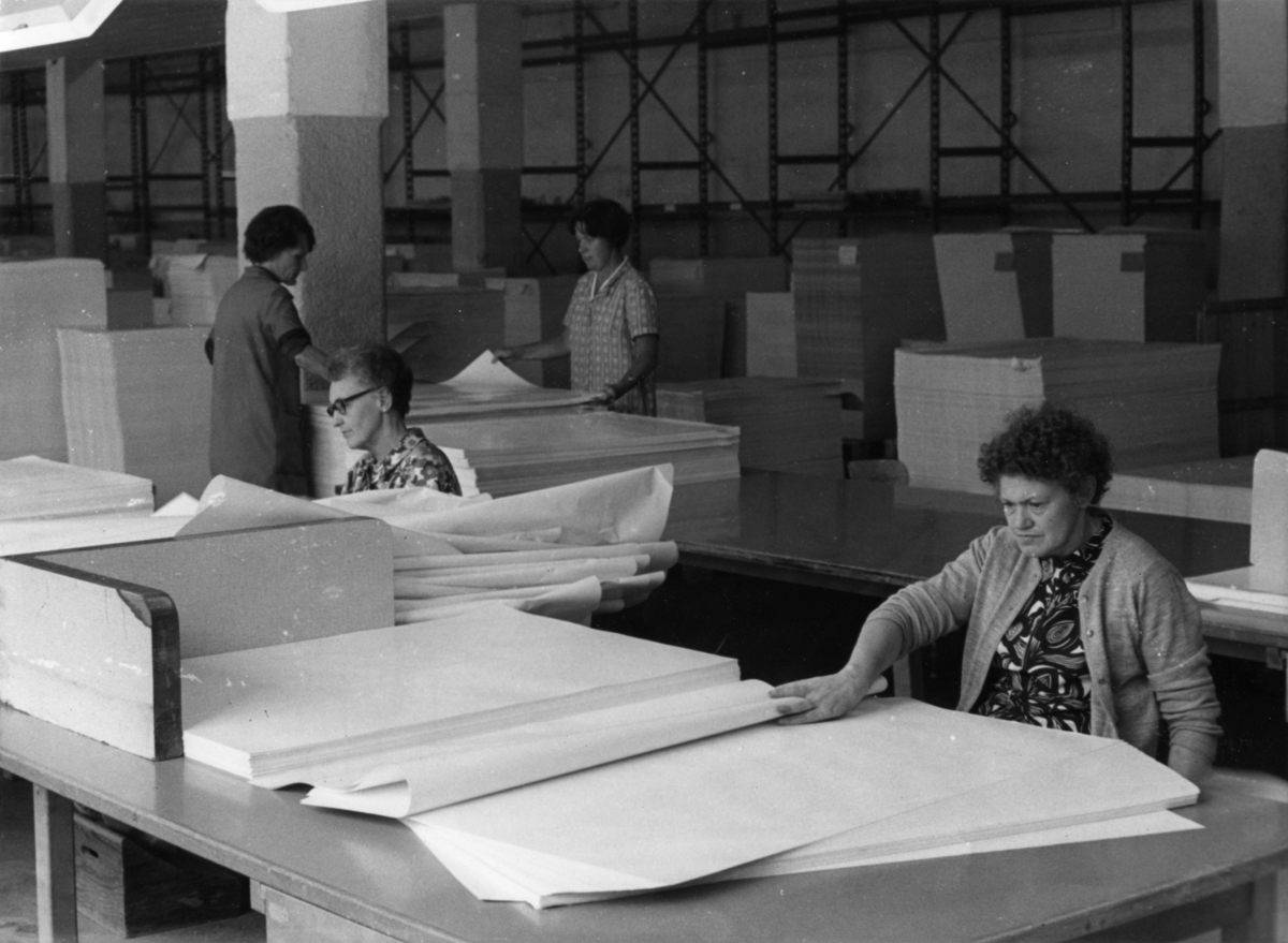 Sorteringssalen på Papyrus, hösten 1970. Fotografi till Nylanders Jubileumsbok 1970.