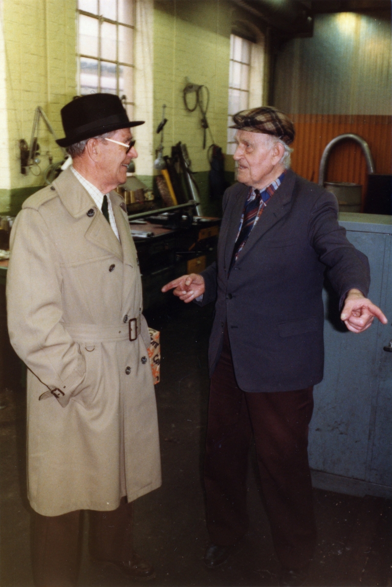 Wiggo Odenius och John Berggren vid fabriksvisning den 28/4 1983.