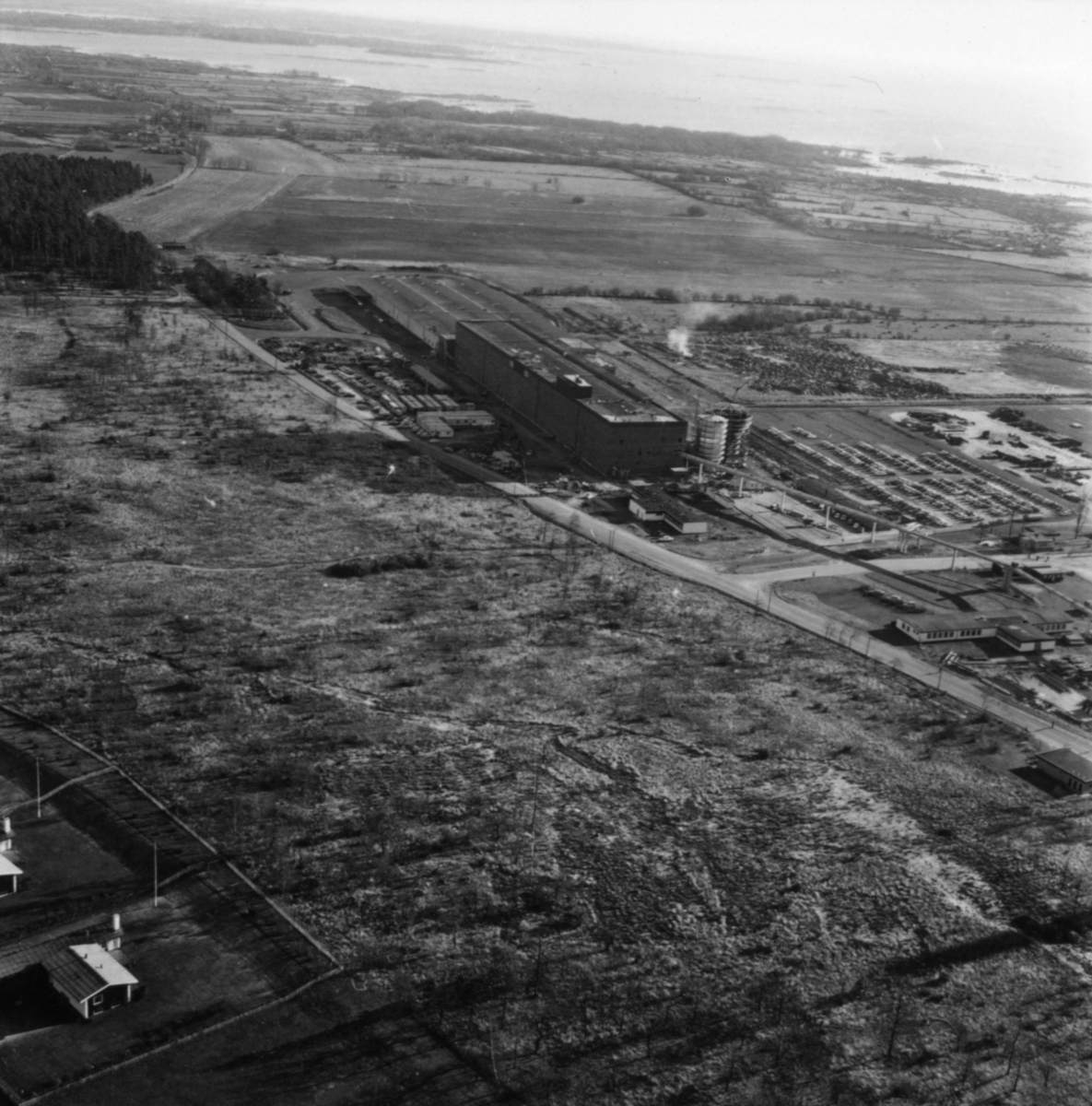 Titel: Flygfoto över Papyrus Nymölla AB. Foto: Kurt Hedö, Kontrast AB Fotografer, Vällingby.