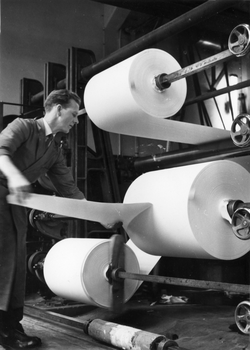 Reiftikontroll, uttagning av provark på Papyrus, den 15/11-1958.