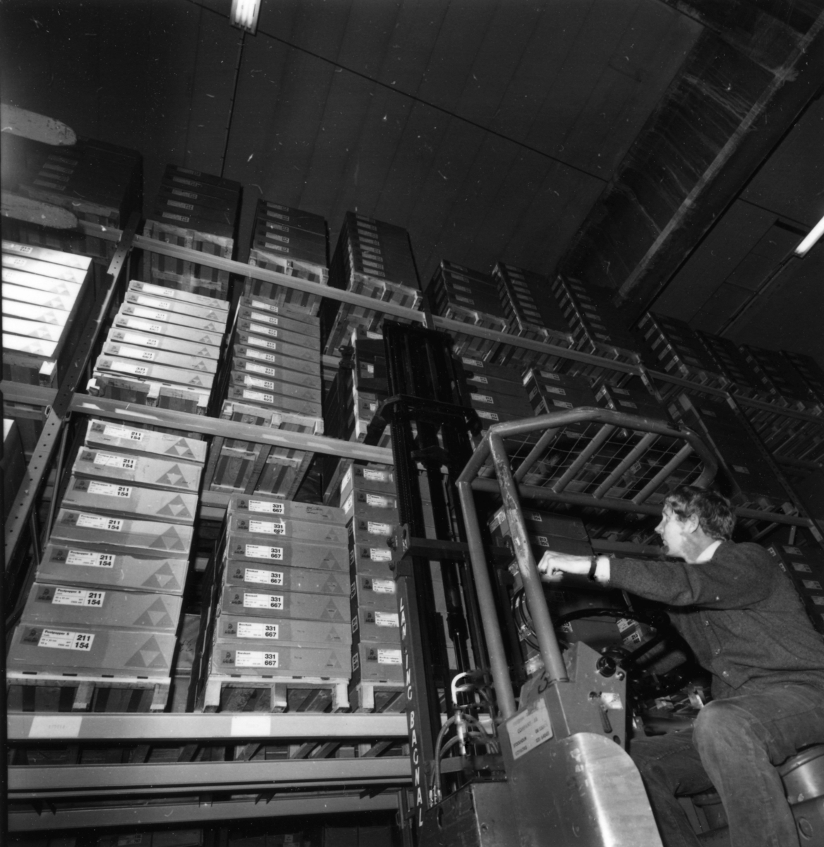 En man arbetar i NT-lagret på Papyrus, 1/10-1970.