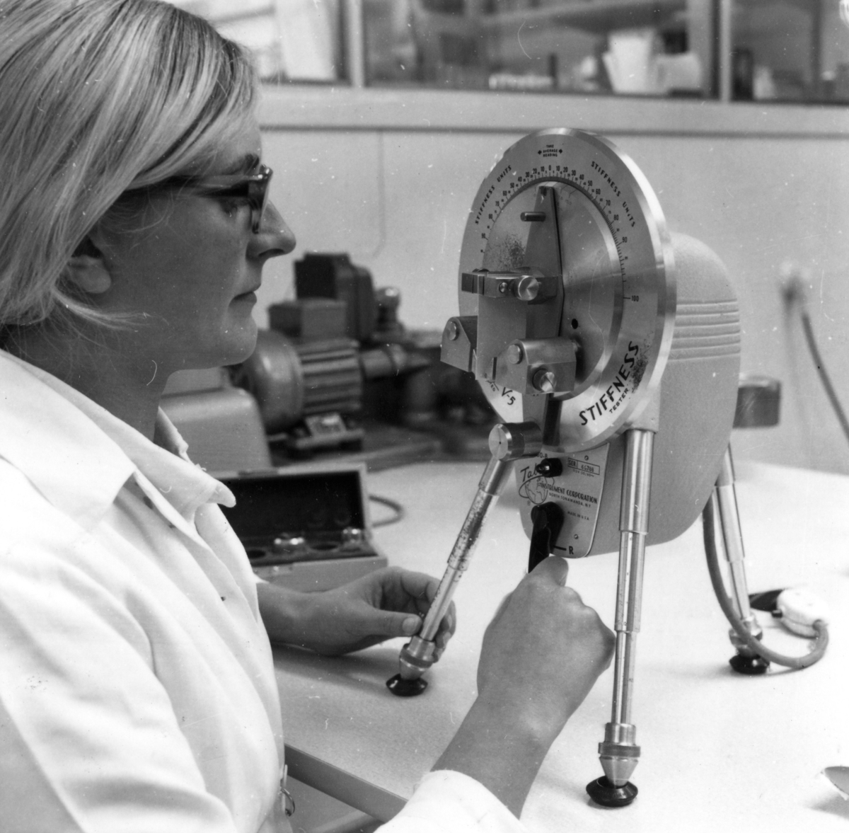 En kvinna arbetar i laboratoriet på Papyrus, 8/9-1970.