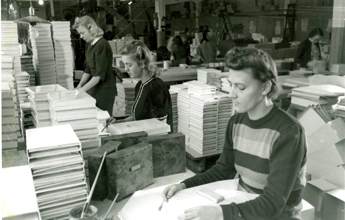 Papyrus AB. Interiörbild från kuveravdelningen. Flera okända kvinnor.