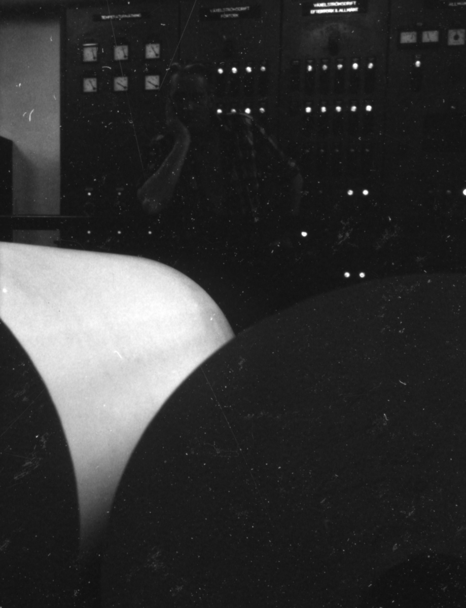 Titel: Manöverbordet vid målmaskin nr. 1 på Papyrus, 12/5-1970. Fotograf: Rolf Salomonsson, Wezäta studio, Grafiska Vägen Box 5057, 402 22 Göteborg 5 Växel 031/40 01 40