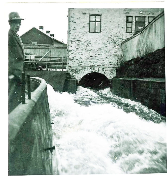 Okänd man tittar på översvämning i Kvarnbyfallet.