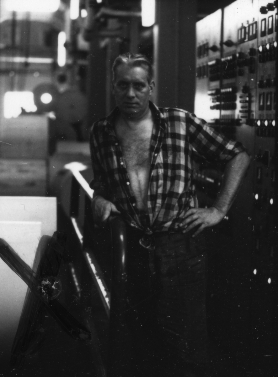 Titel: En man arbetar vid manöverbordet vid målmaskin nr. 1 på Papyrus, 12/5-1970. Fotograf: Rolf Salomonsson, Wezäta studio, Grafiska Vägen Box 5057, 402 22 Göteborg 5 Växel 031/40 01 40