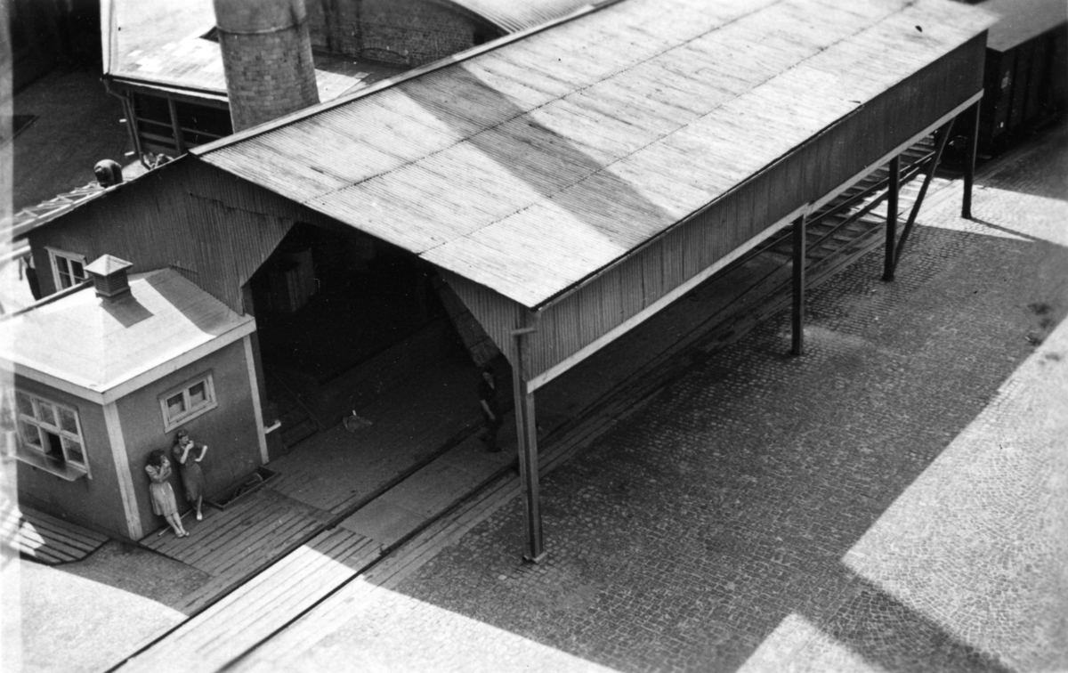 Lagerbyggnad 110 och 111 under uppbyggnad på Papyrus fabriksområde, 25/7-1945.