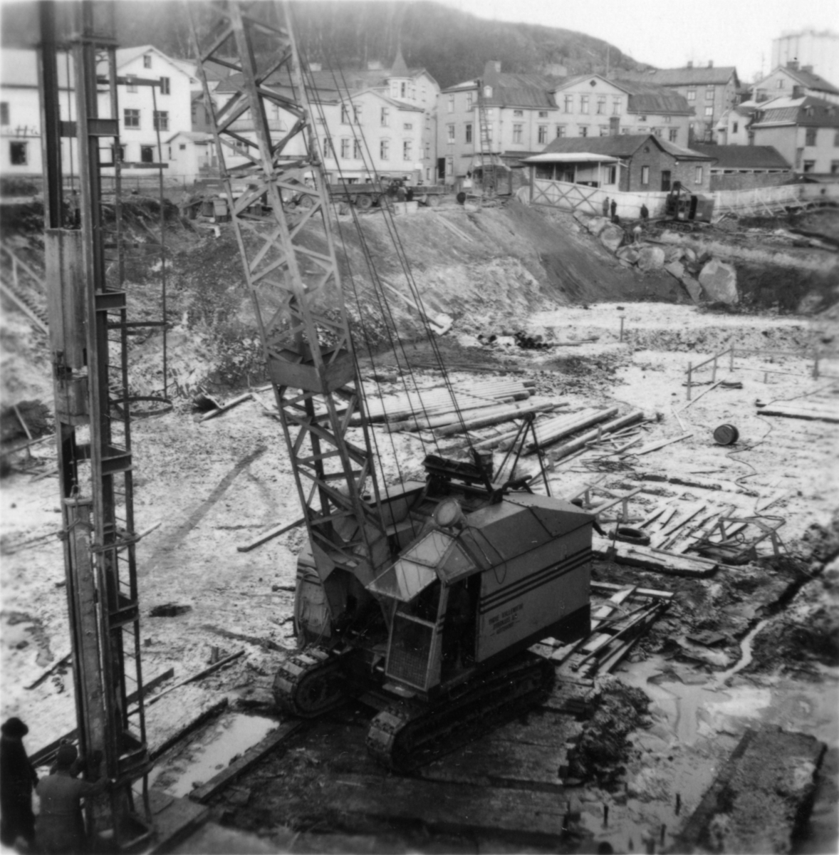 Byggnad N:o 6, tillbyggnad 1954. Pålning.