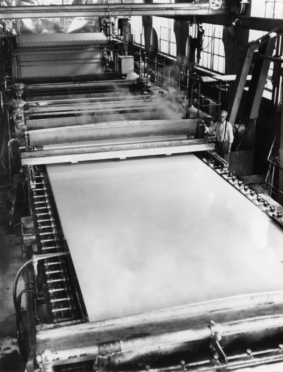 En man arbetar vid PM 12 på Papyrus, okt. 1951.