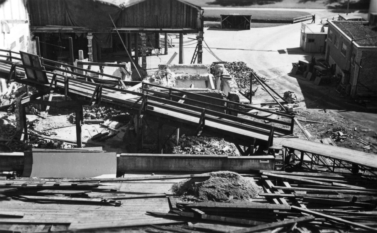 Lagerbyggnad 110 och 111 under uppbyggnad på Papyrus fabriksområde, 27/8-1945.