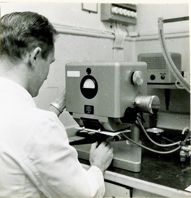 AB Papyrus. Laboratoriet. Man vid ljuskretsmätare. 19/9 1962
