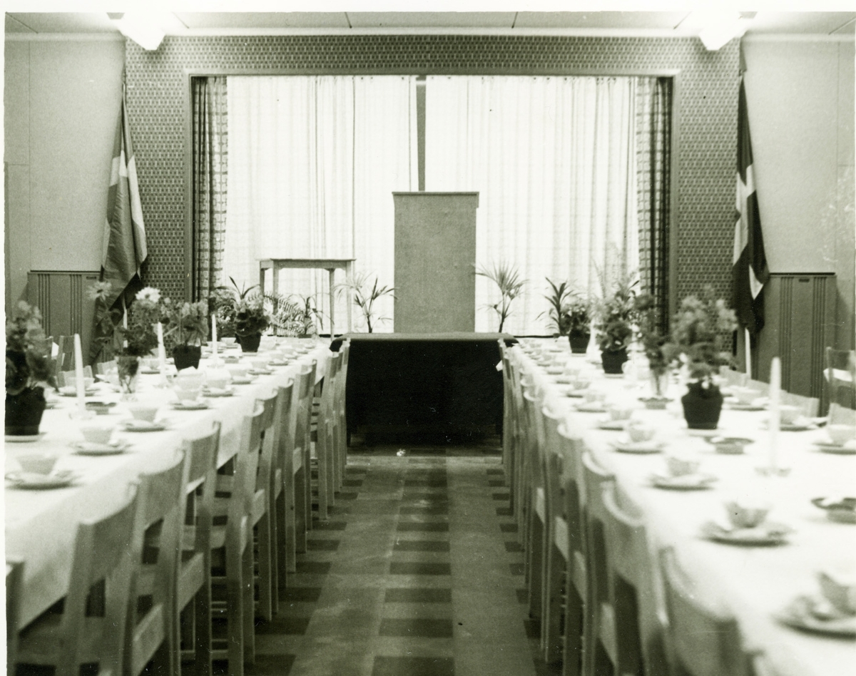 Invigning av Hemvärnsgården i Mölndal år 1953. Fyra okända hemvärnsmän och tre lottor.