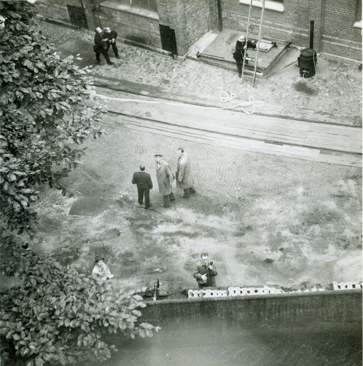 AB Papyrus. Brandövning. 30/9 1958. Bilden tagen från taket.