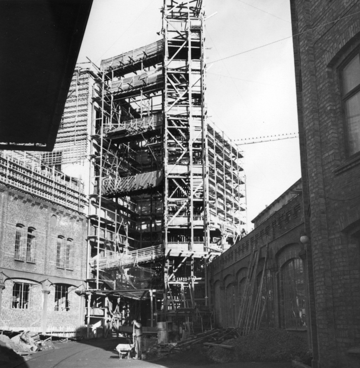 Byggnad nr 6 under byggnad på Papyrus fabriksområde, 15/2-1949.