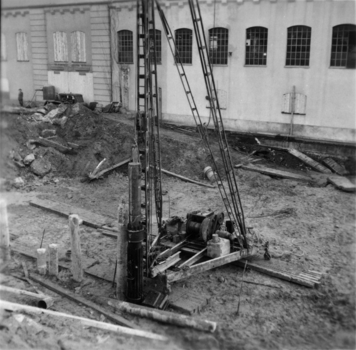 Byggnad N:o 6, tillbyggnad 1954. Pålning med diesel.
