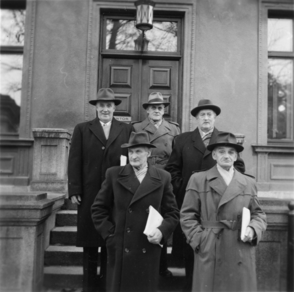 Personal från Ljungskogs 43 som har erhållit en minnesgåva (klocka). Bilden tagen utanför Papyrusvillan.