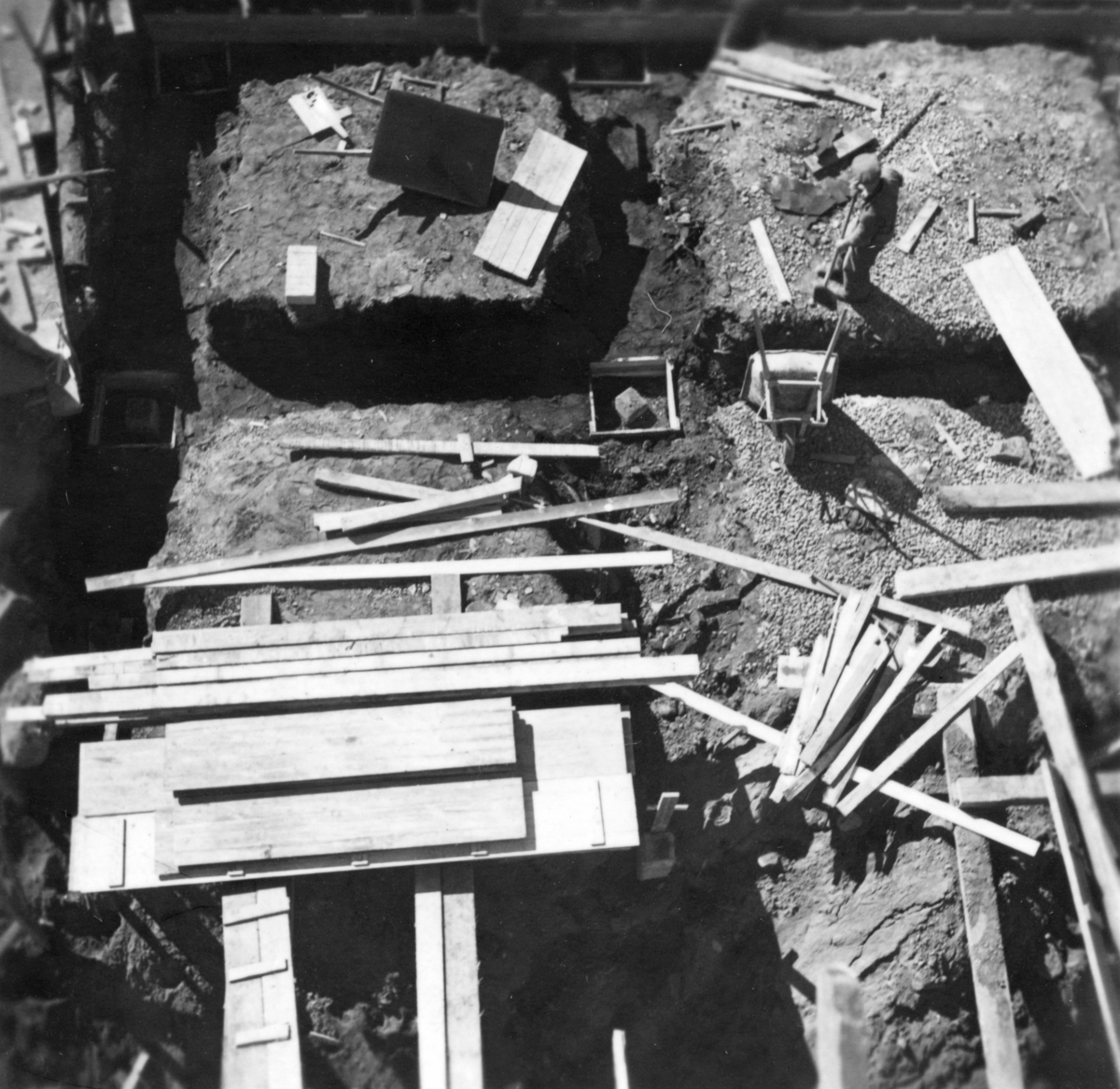 Lagerbyggnad 110 och 111 under uppbyggnad på Papyrus fabriksområde, 10/4-1946.
