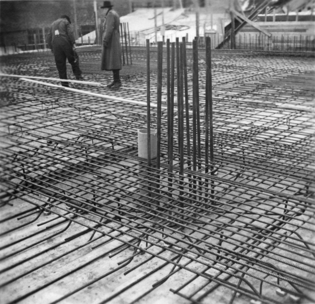 Titel: Lagerbyggnad 110 och 111 under byggnad. Två män med på bilden.