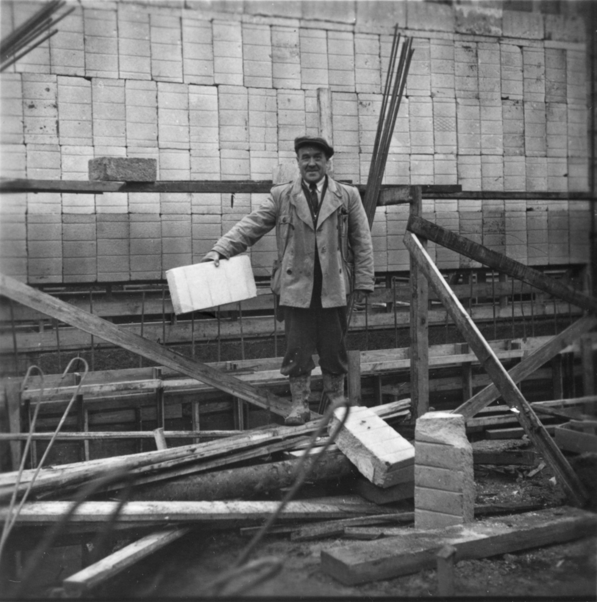 Lagerbyggnad 110 och 111 under byggnad. en man är med på bilden.