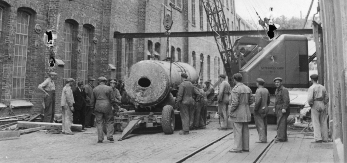 Borttransportering av gammal ångpanna.