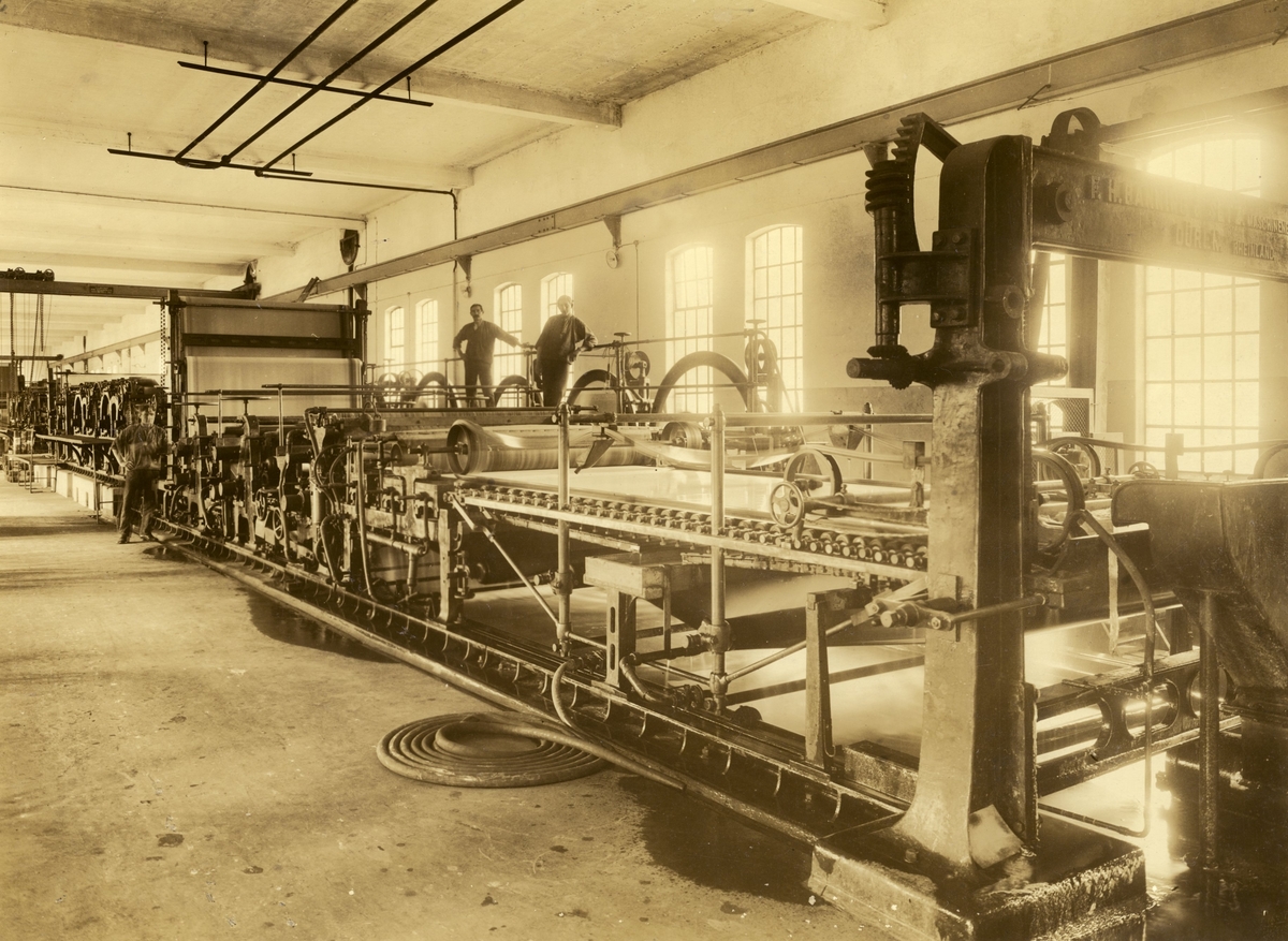 Tre män arbetar vid PM 10 på Papyrus fabriker, år 1918.