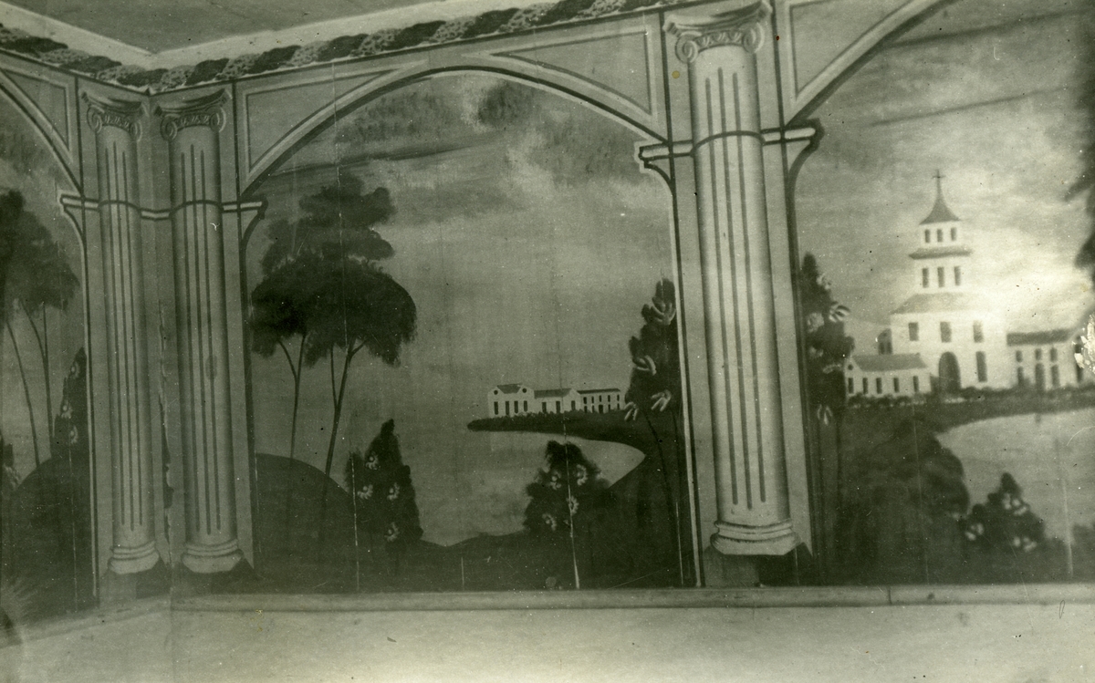 En interiörbild med väggmåleri i Söderomsjön.
