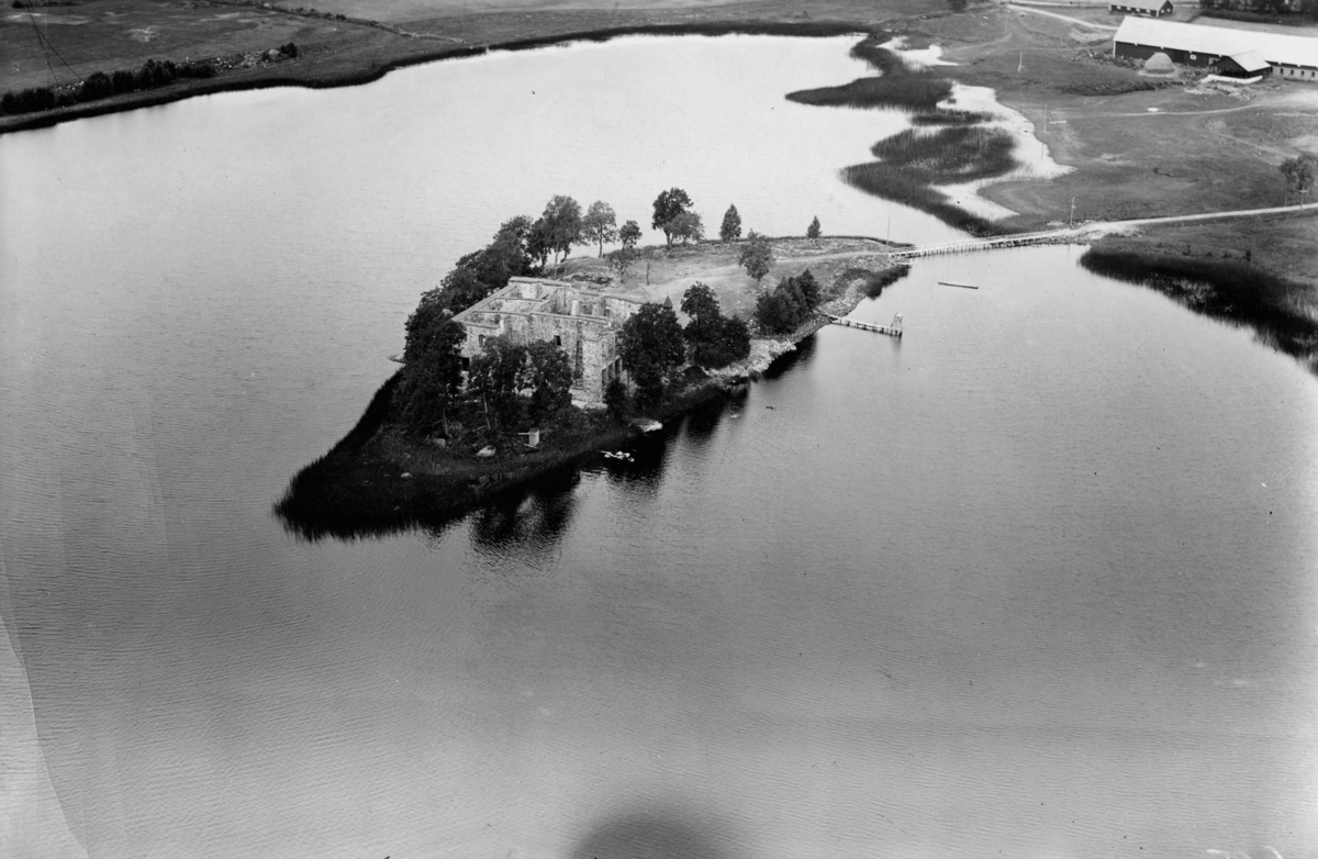 Flygfoto över slottsruin Eksjöhovgård i Sävsjö kommun. nr C 1834