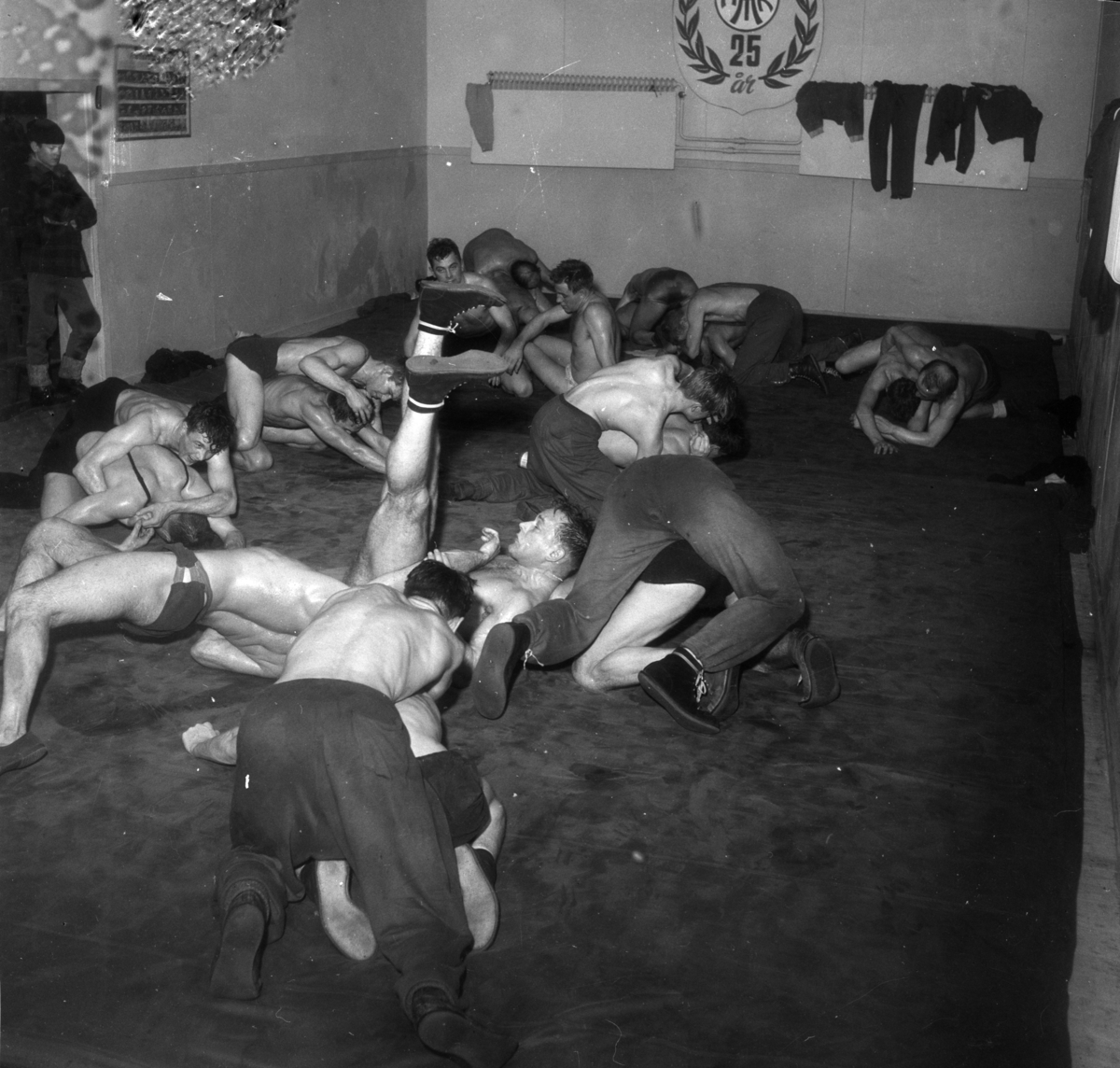 Brottare med tränare från landslaget den 14 februari 1956.
